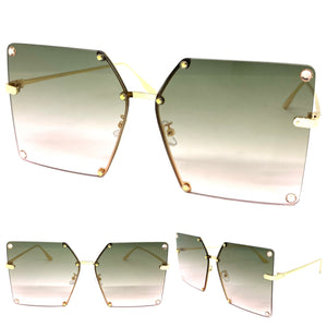 Oversized Exaggerated Vintage Retro Style SUNGLASSES Large Square Green Lens 2338