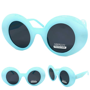 Oversized Exaggerated Vintage Retro Style SUNGLASSES Round Baby Blue Frame 1039