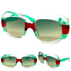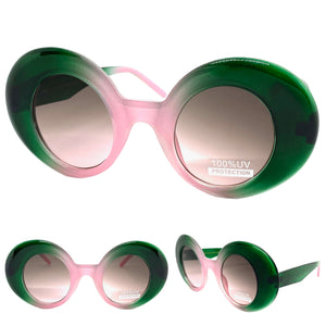 Oversized Exaggerated Vintage Retro Style SUNGLASSES Round Green & Pink Frame 1039