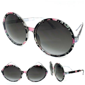 Oversized Exaggerated Vintage Retro Style SUNGLASSES X-Large Round Floral Frame 6629