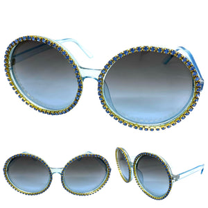 Oversized Exaggerated Vintage Retro Style SUNGLASSES X-Large Round Blue Frame 8326