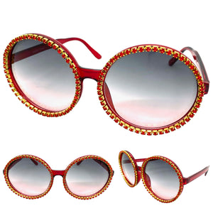 Oversized Exaggerated Vintage Retro Style SUNGLASSES X-Large Round Red Frame 8326