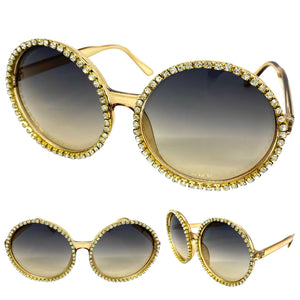 Oversized Exaggerated Vintage Retro Style SUNGLASSES X-Large Round Tan Frame 8326