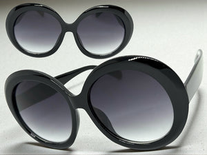 Oversized Exaggerated Vintage Retro Style SUNGLASSES X-Large Round Black Frame 2685