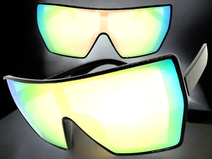 Oversized Futuristic Modern Rerto Shield Style SUNGLASSES Large Black Frame 7407