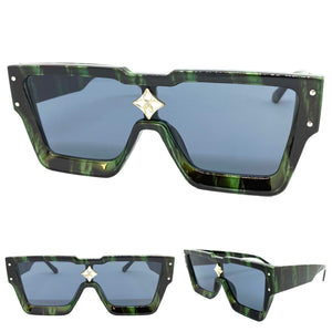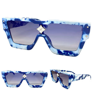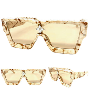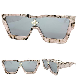 Oversized Modern Luxury Hip Hop Shield Style SUNGLASSES Large Marble Frame E1776