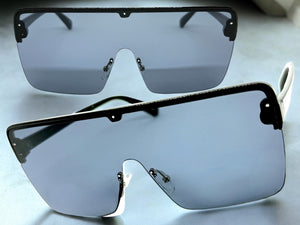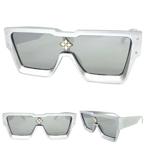 Oversized Modern Luxury Hip Hop Shield Style SUNGLASSES Large Silver Frame E1776