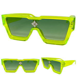 Oversized Modern Luxury Hip Hop Shield Style SUNGLASSES Large Neon Green Frame E1776
