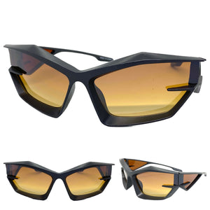 Oversized Modern Rerto Shield Style SUNGLASSES Large Black Frame Yellow Lens 6480