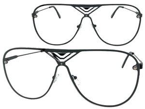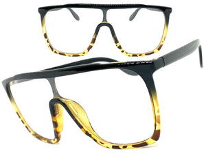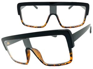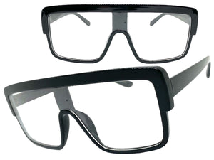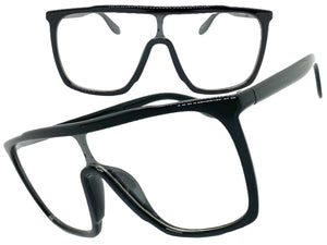 Oversized Modern Retro Shield Style Clear Lens EYEGLASSES Large Black Frame 6325