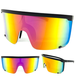 Oversized Modern Retro Shield Style SUNGLASSES Huge Black Frame Rainbow Lens 6331