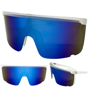 Oversized Modern Retro Shield Style SUNGLASSES Huge Frosted Frame Blue Lens 6331