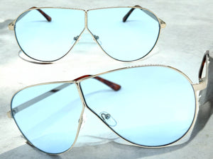 Oversized Modern Retro Shield Style SUNGLASSES Large Silver Frame - Blue Lens 4617