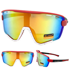 Oversized Retro Sporty Wrap Around Style SUNGLASSES Large Red & White Frame 3694