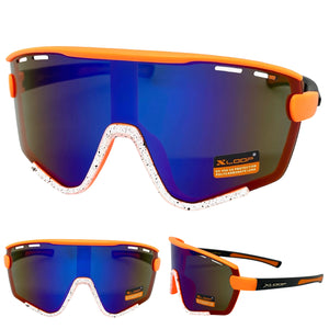 Oversized Retro Sporty Wrap Around Style SUNGLASSES Large Orange & White Frame 3694