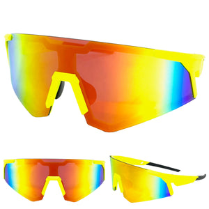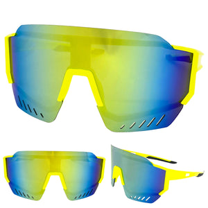 Oversized Retro Sporty Wrap Around Style SUNGLASSES Large Neon Yellow Frame E1927