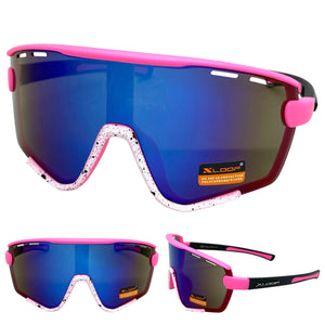 Oversized Retro Sporty Wrap Around Style SUNGLASSES Large Pink & White Frame 3694