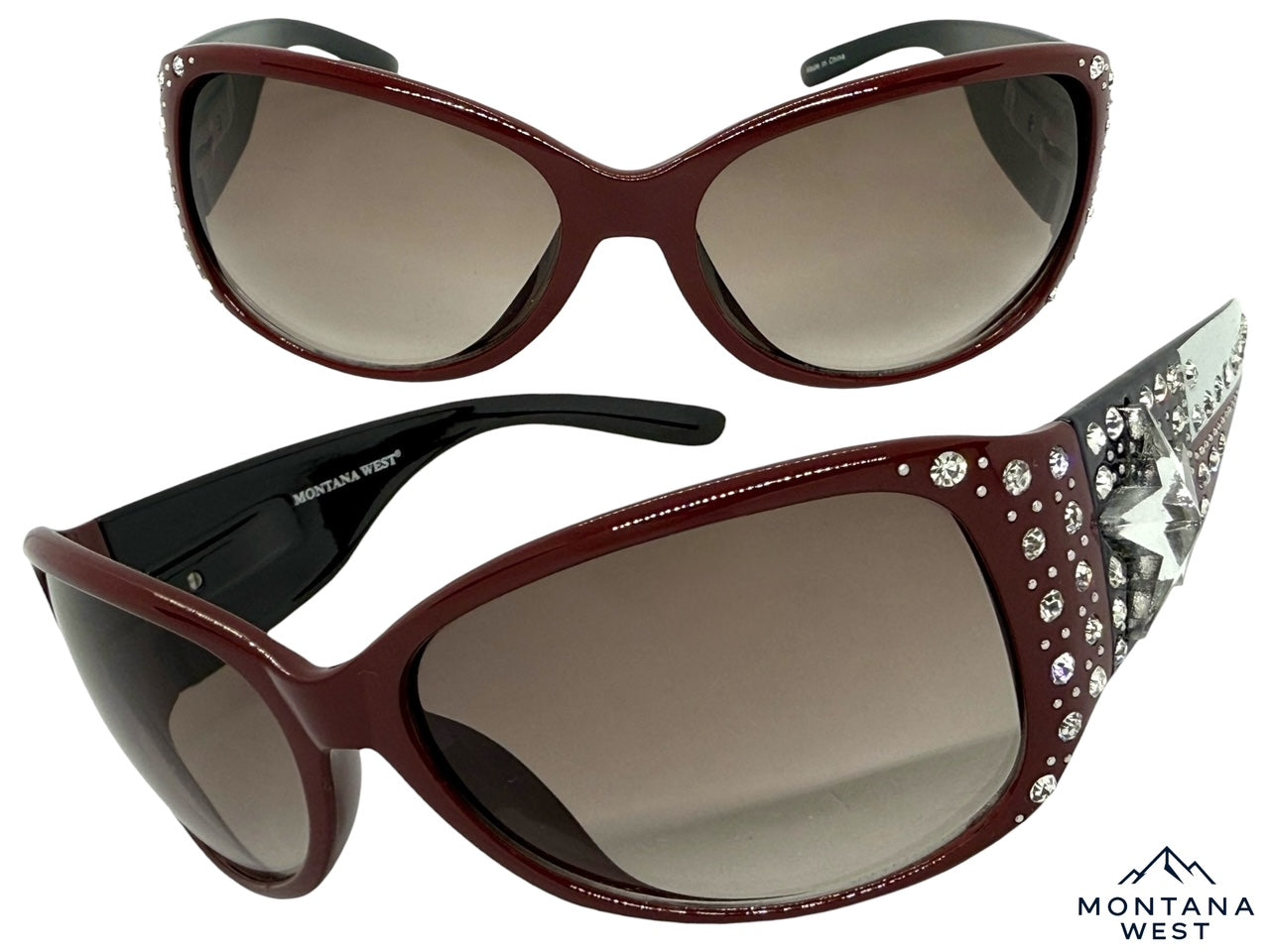 Classy Elegant Western Cowgirl Style Montana West SUNGLASSES Maroon Frame - Bling Texas Flag SGS-TX03