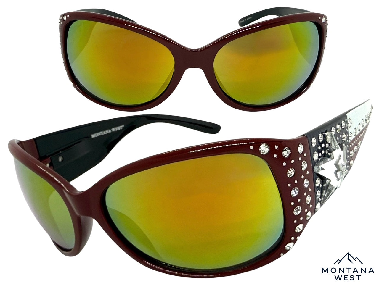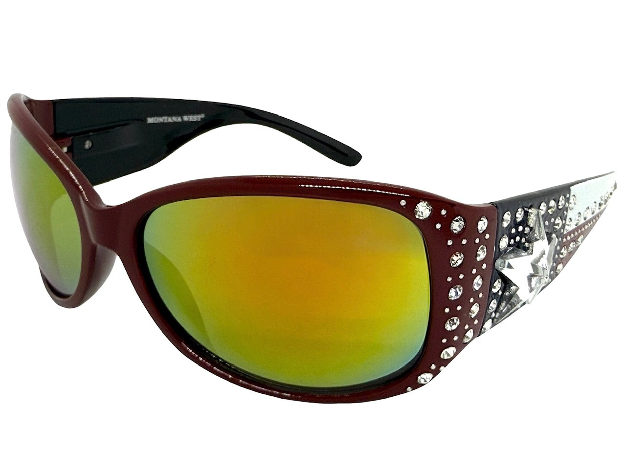 Classy Elegant Western Cowgirl Style Montana West SUNGLASSES Maroon Frame - Bling Texas Flag SGS-TX03