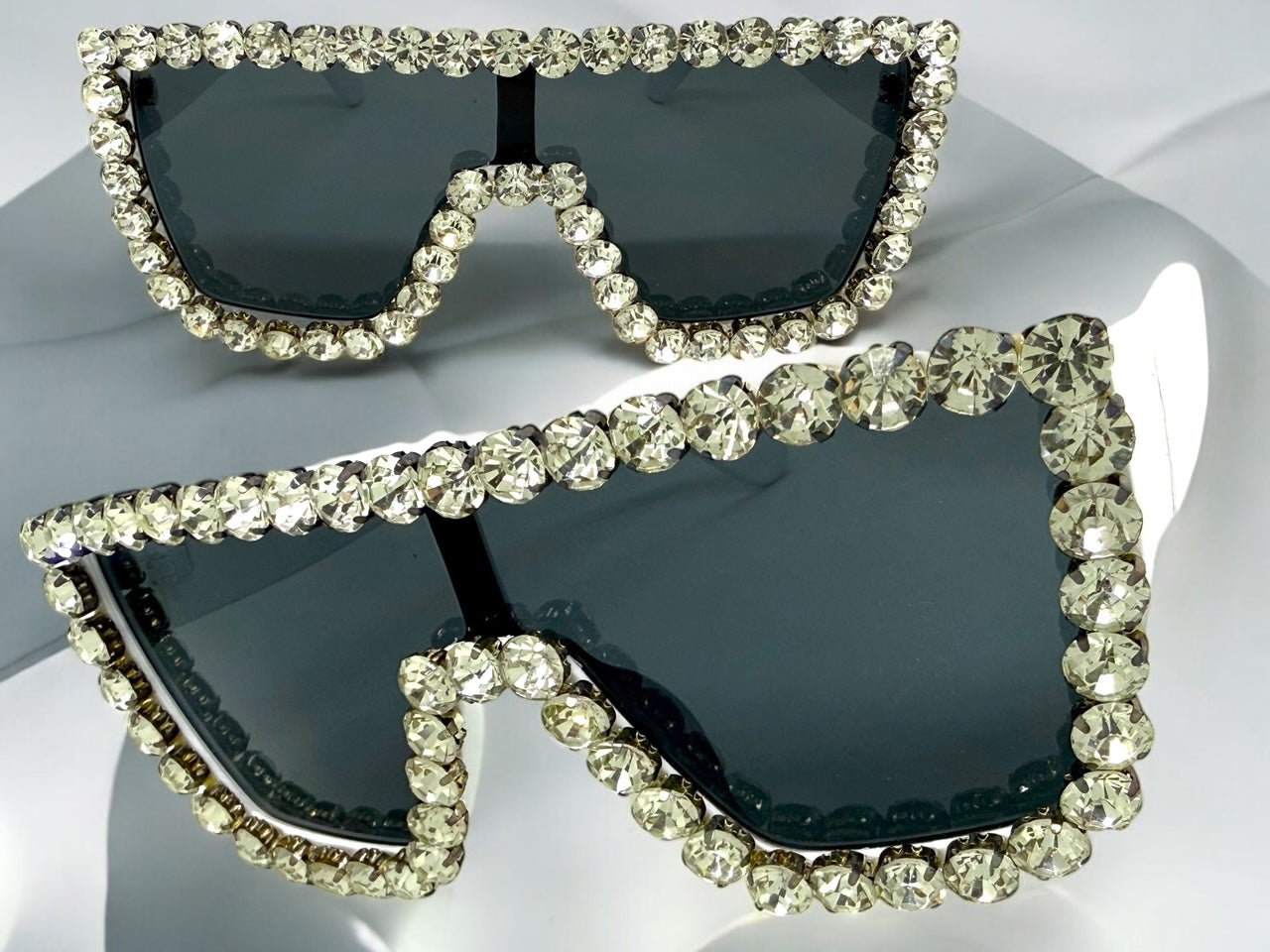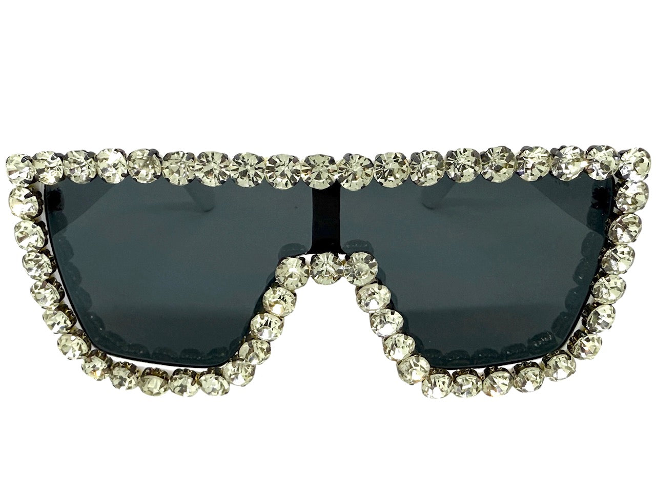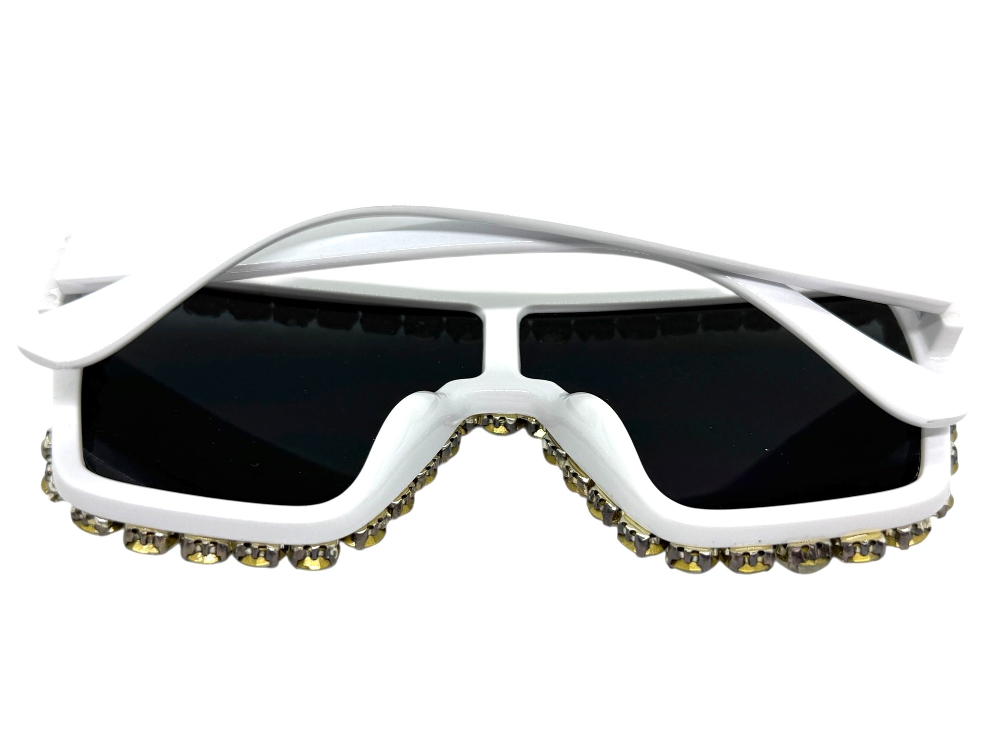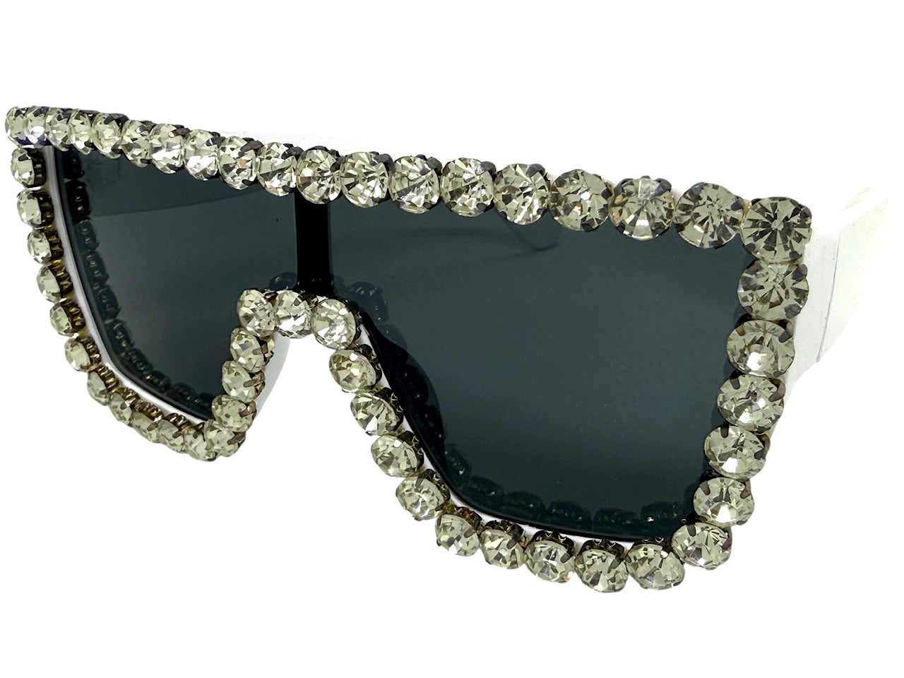 Oversized Exaggerated Retro Shield Style Bling Sunglasses Large White Frame with Sparkling Rhinestones 3265