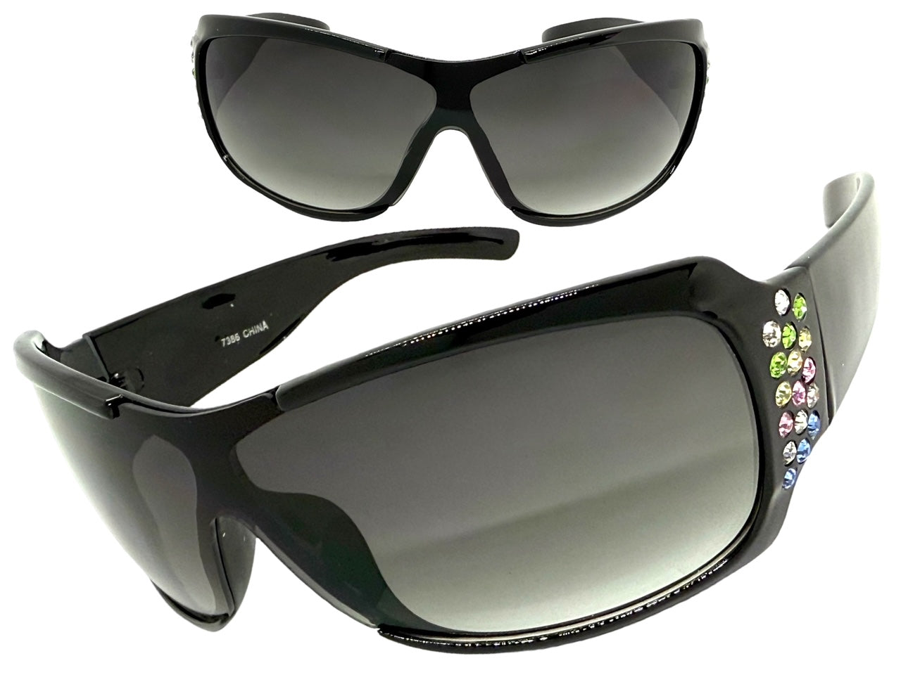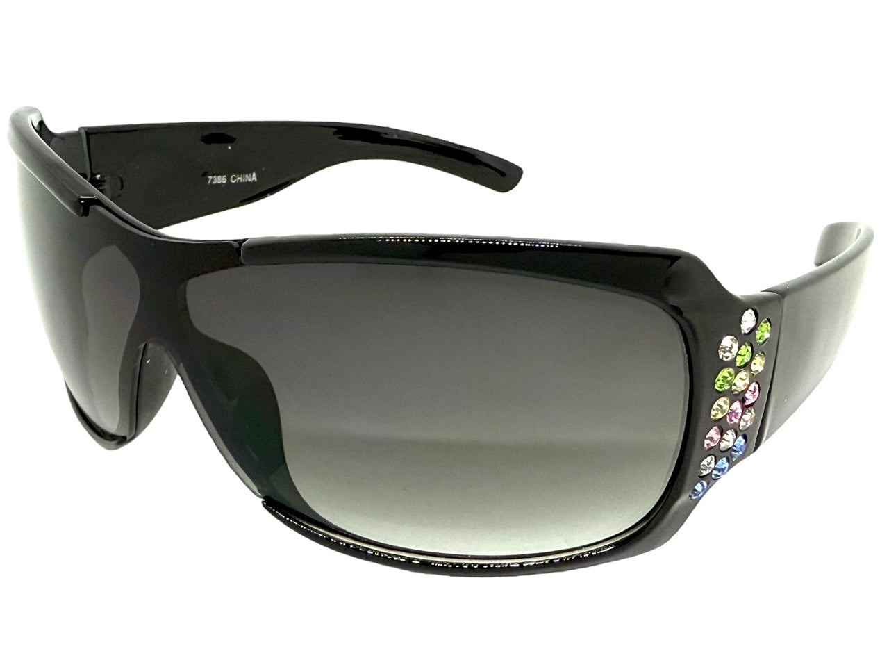 Oversized Modern Retro Wrap Shield Style Bling Sunglasses Large Black Frame with Sparkling Rhinestones 7386