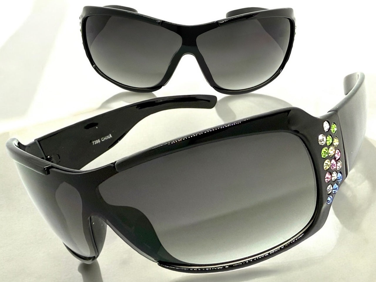 Black Frame Embellished with Large Sparkling Multicolor Rhinestones