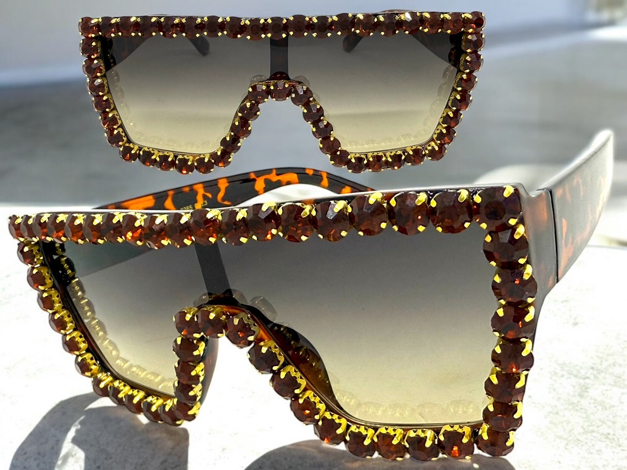 Tortoise Frame Embellished with Large Sparkling Rhinestones