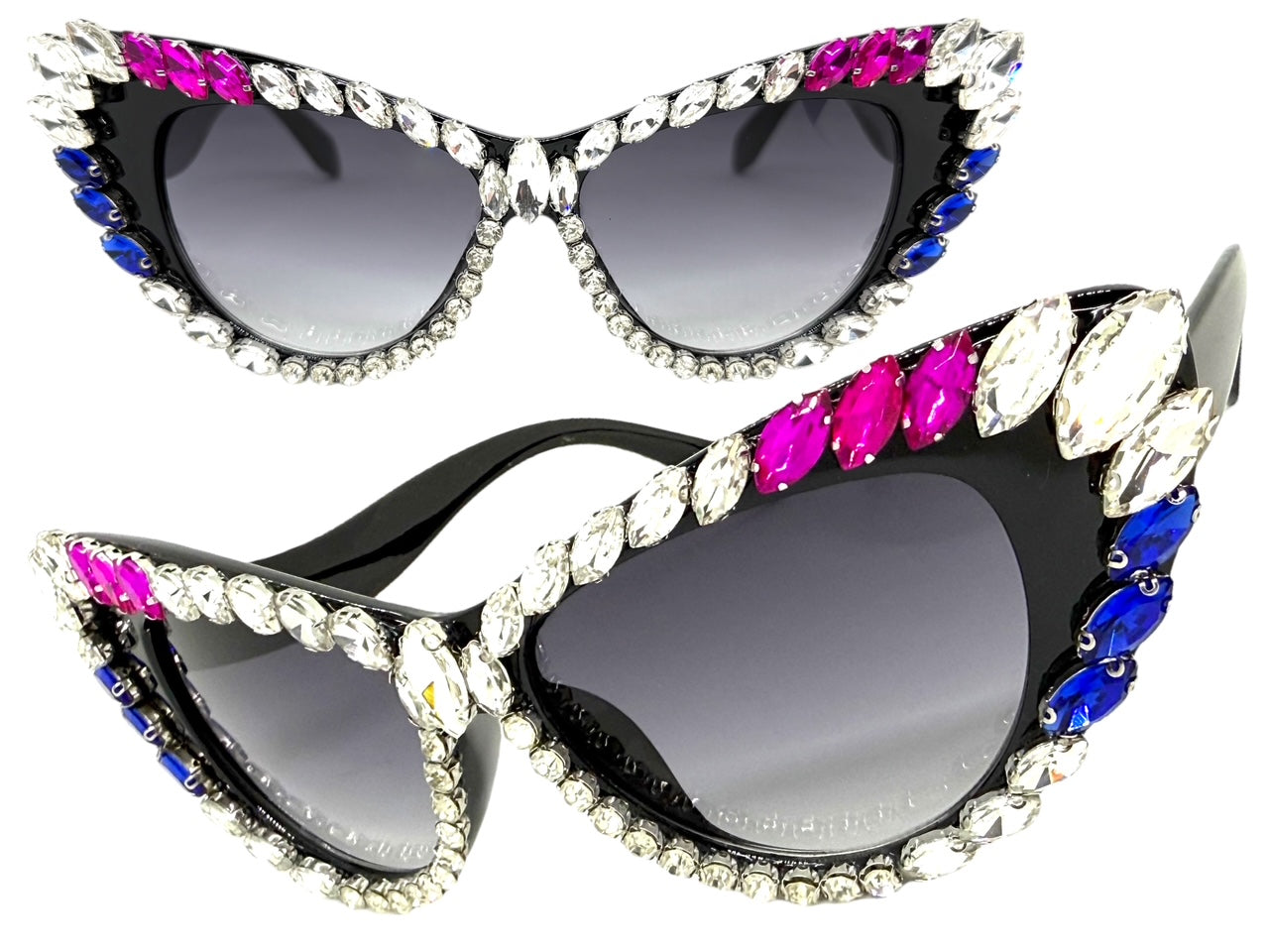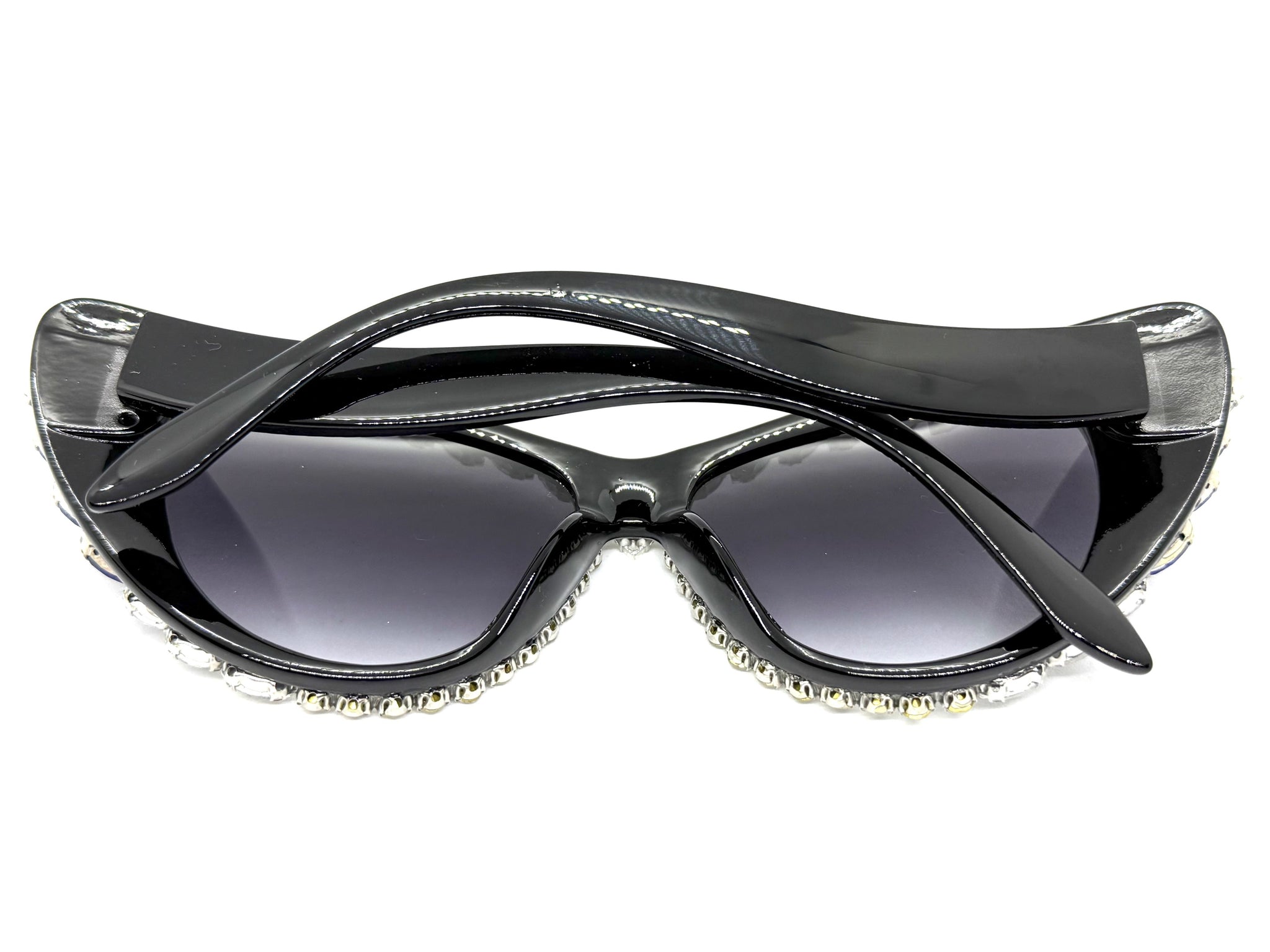 Oversized Exaggerated Retro Cat Eye Style Bling Sunglasses Large Black Frame with Sparkling Crystals 4598