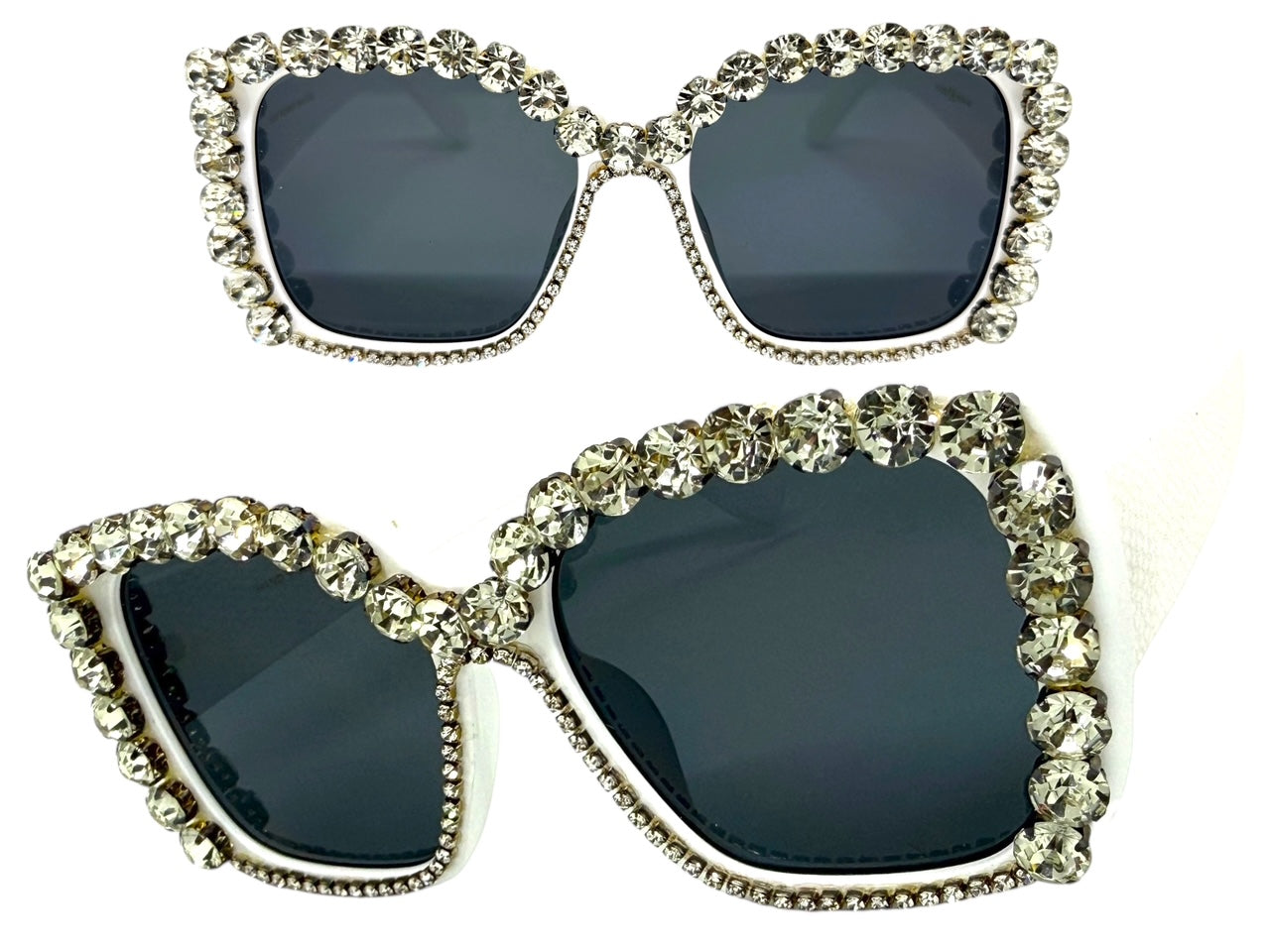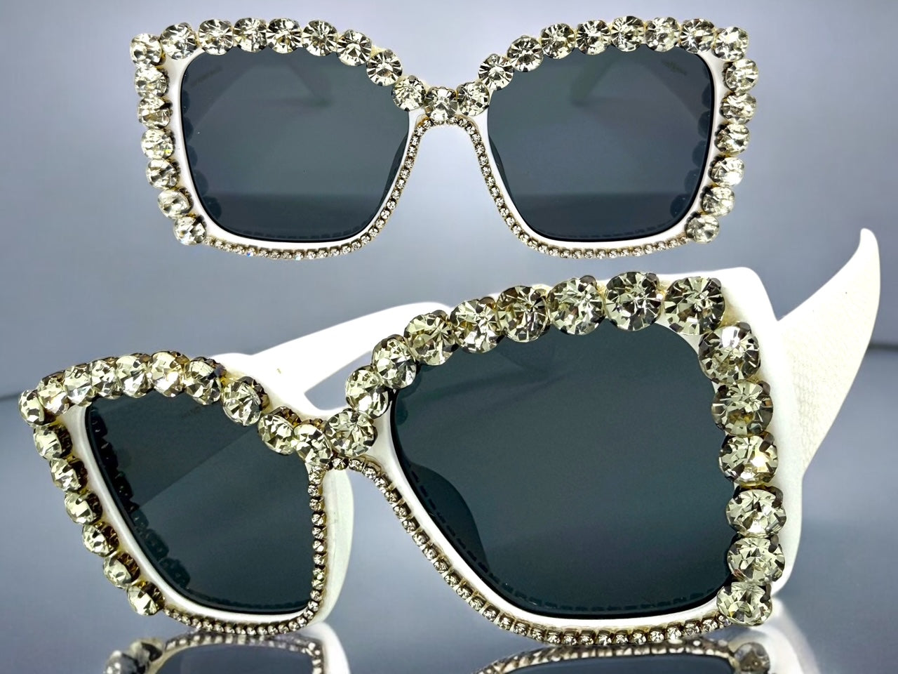 Oversized Exaggerated Retro Style Bling Sunglasses Large White Frame with Sparkling Rhinestones 3250