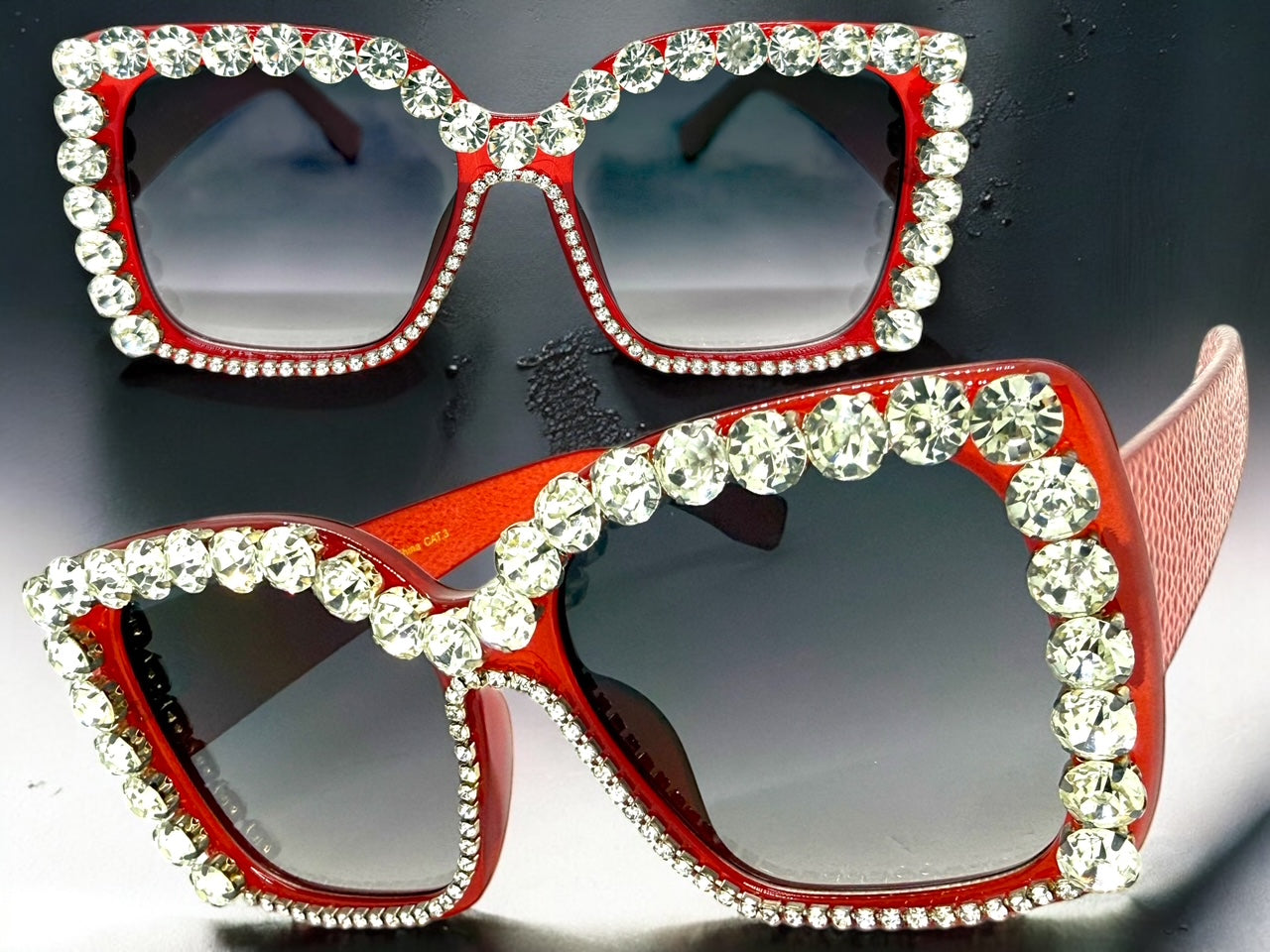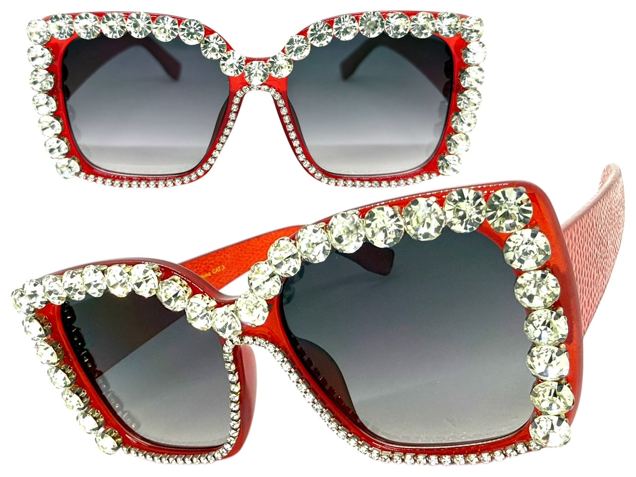 Oversized Exaggerated Retro Style Bling Sunglasses Large Red Frame with Sparkling Rhinestones 3250