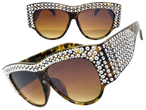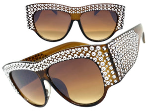 Oversized Luxurious Vintage Retro Style SUNGLASSES Large Bling Brown Frame E1290