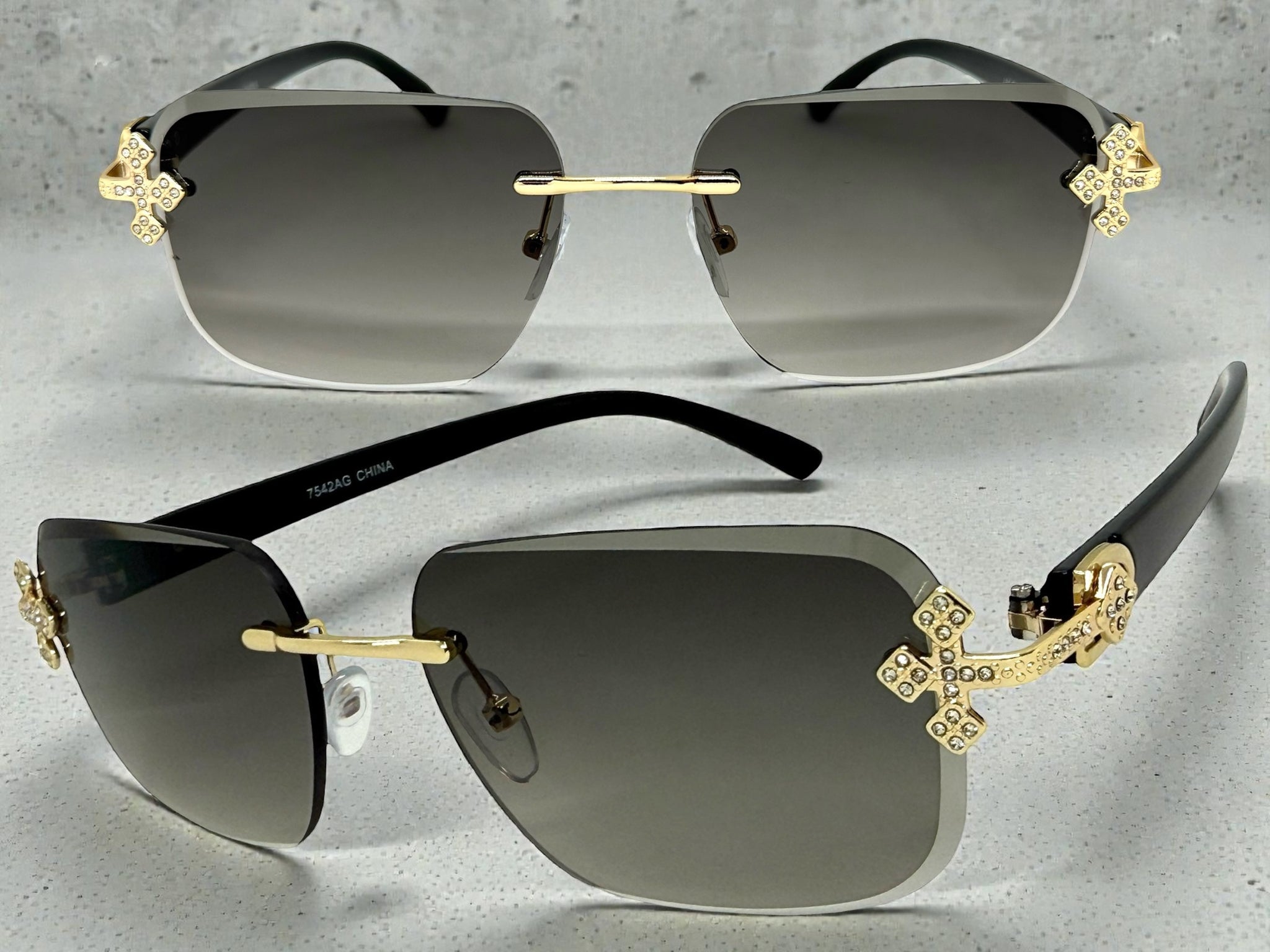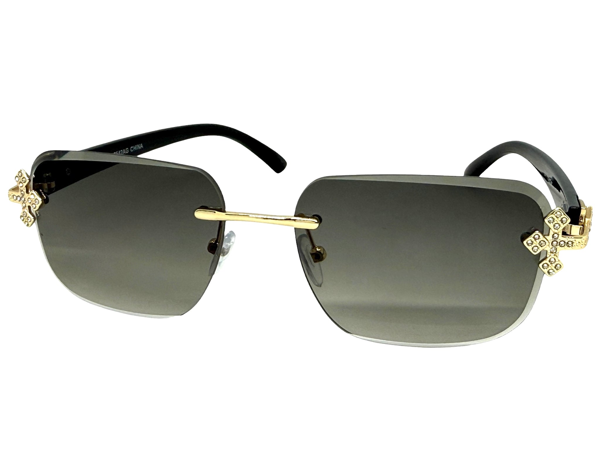 Gold Frame with Black Arms Accented with a Bedazzled Cross on Each Corner of the Frame