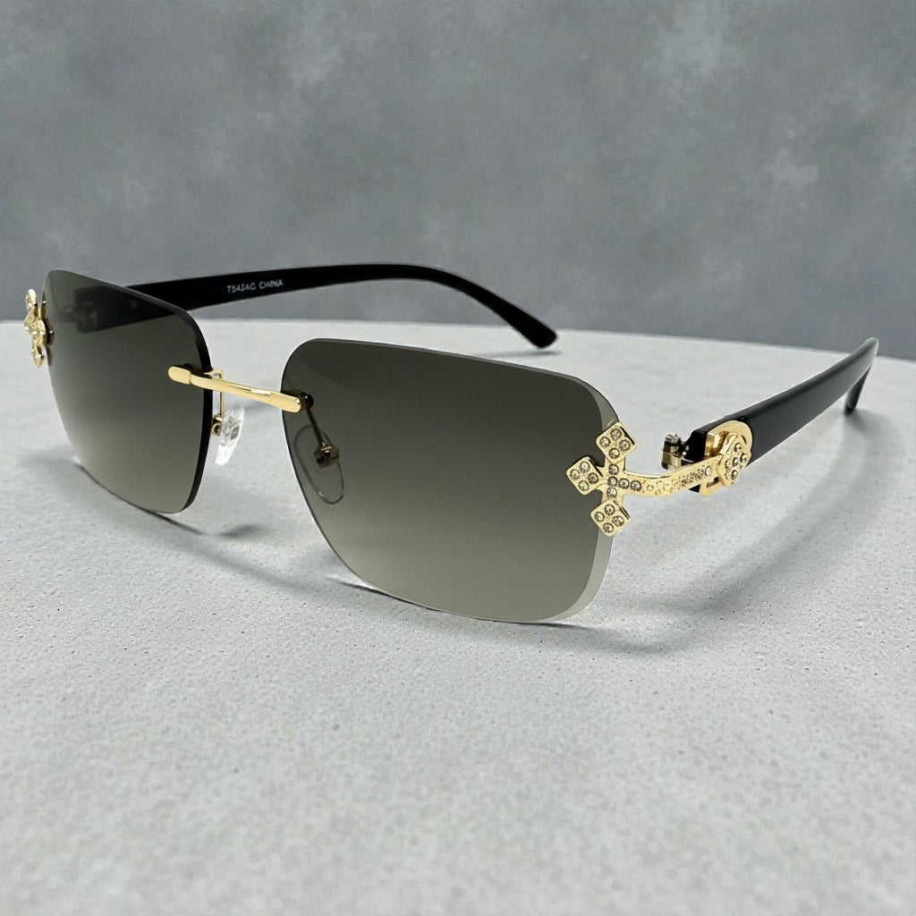 Classy Elegant Luxury Modern Hip Hop Style SUNGLASSES Rimless Gold Frame 7542
