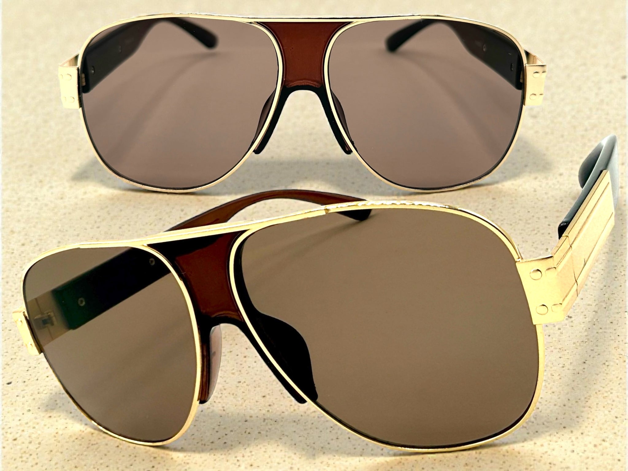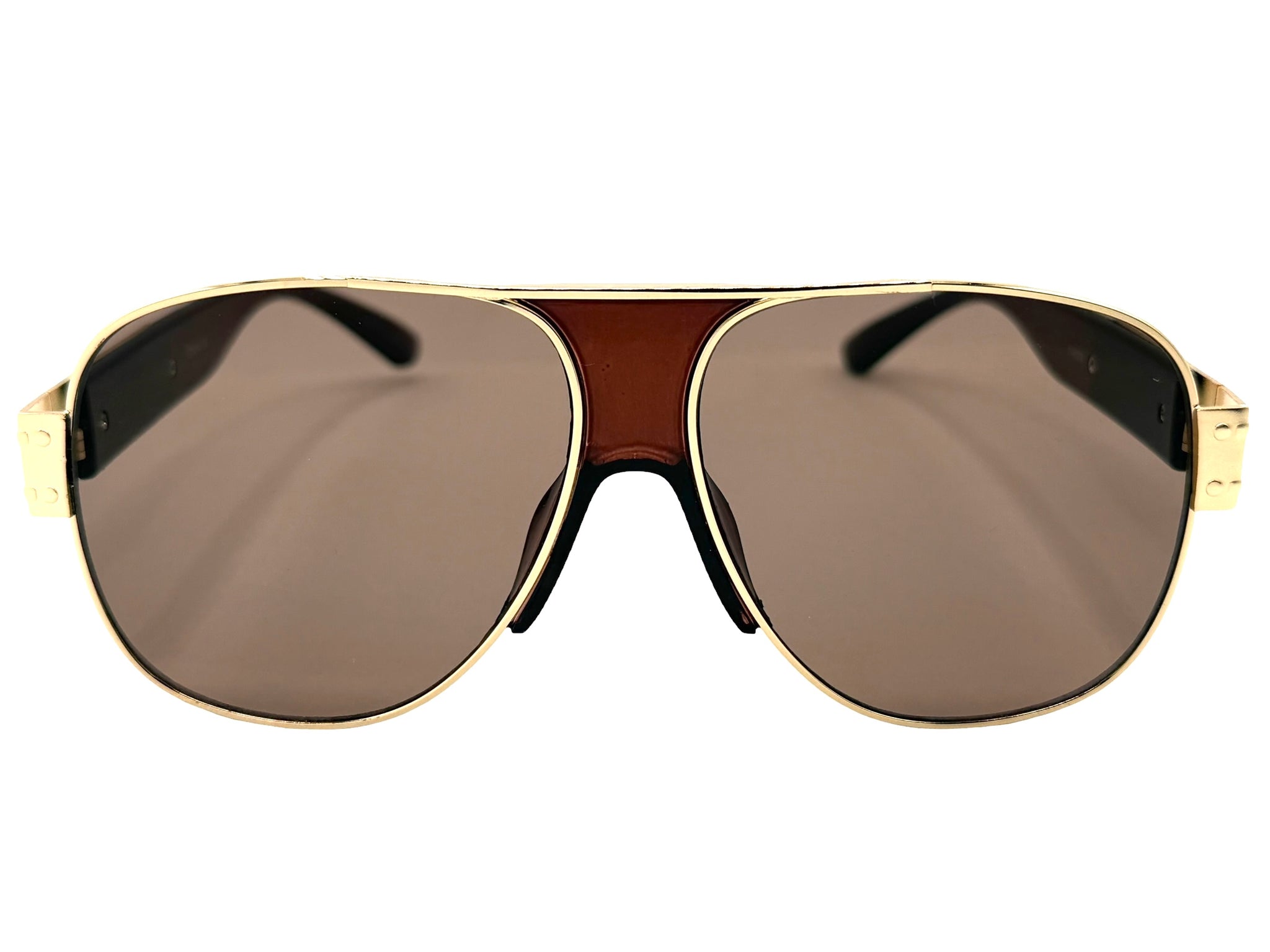 Classic Hardcore Biker Gangster Hip Hop Rapper Style SUNGLASSES Gold & Brown Frame - Brown Lens 4000