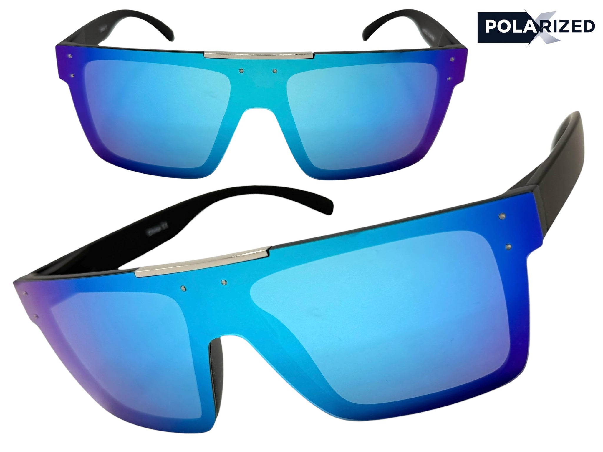 Classic Biker Motorcycle Riding Fishing Wrap Shield Style POLARIZED SUNGLASSES Black Frame - Blue Lens X0023