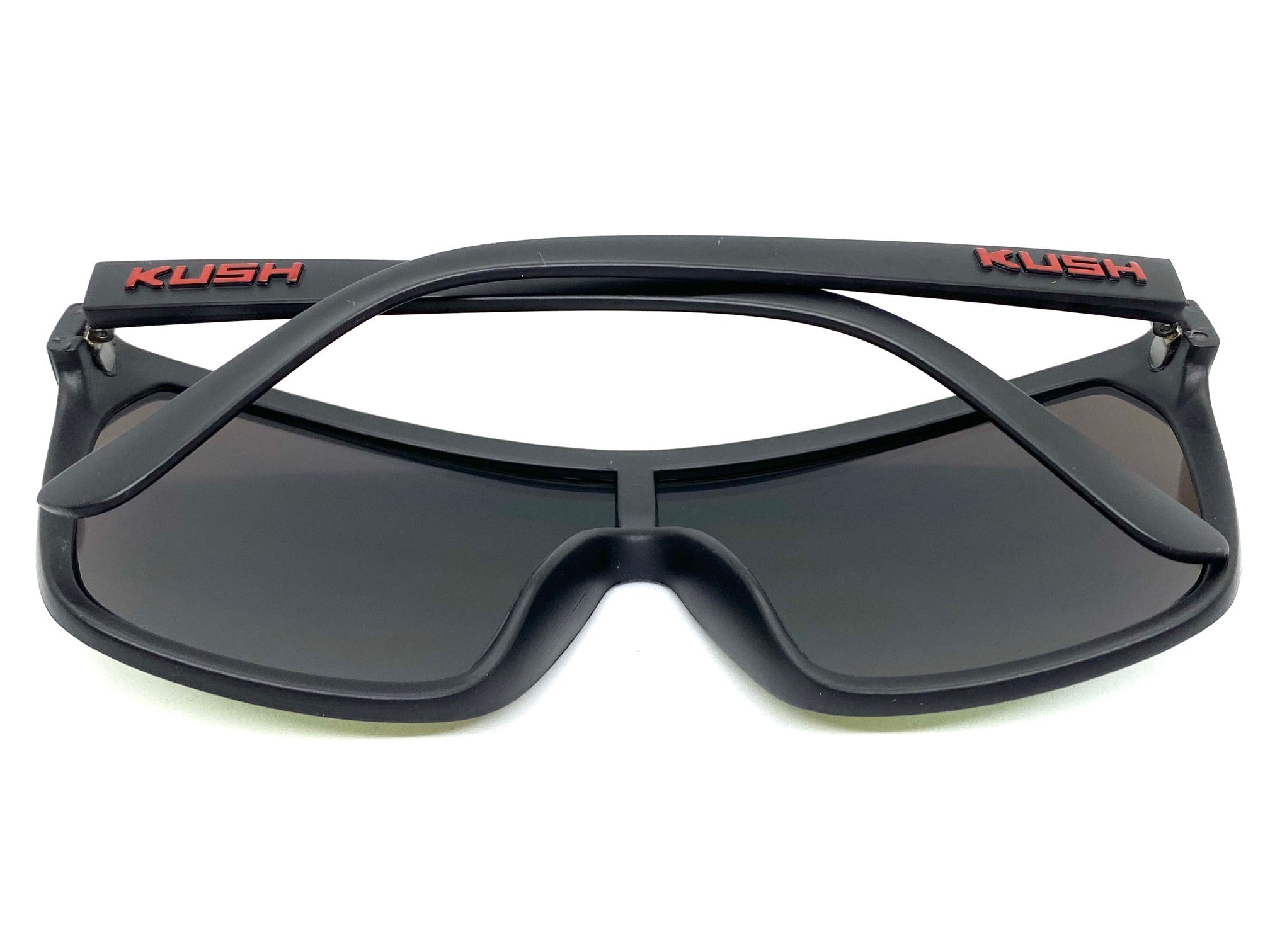 Black Frame Decorated with a Red KUSH logo on Each Side of the Temples