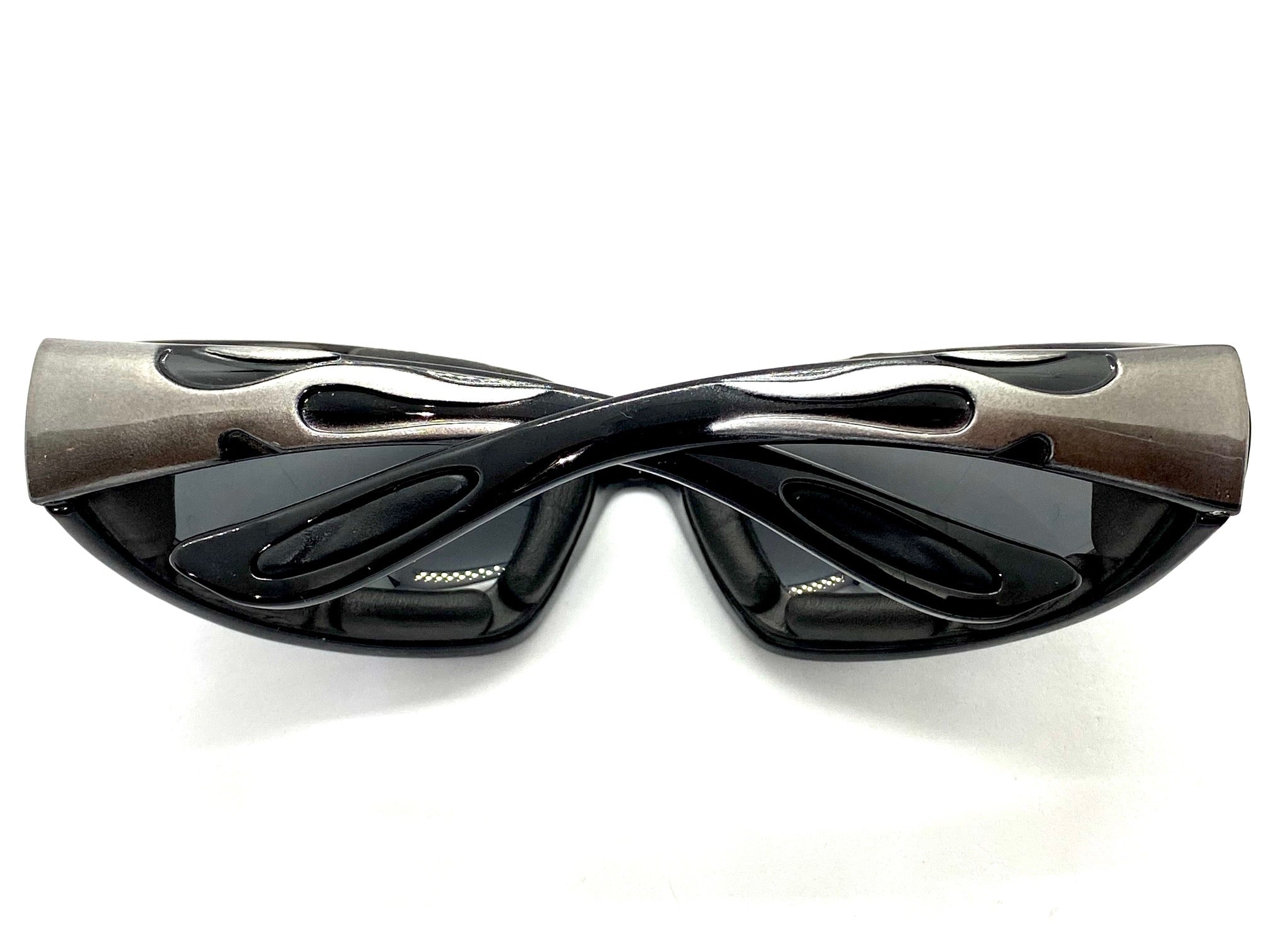 Black Frame Accented with Gray Flames on Each Side of the Arms