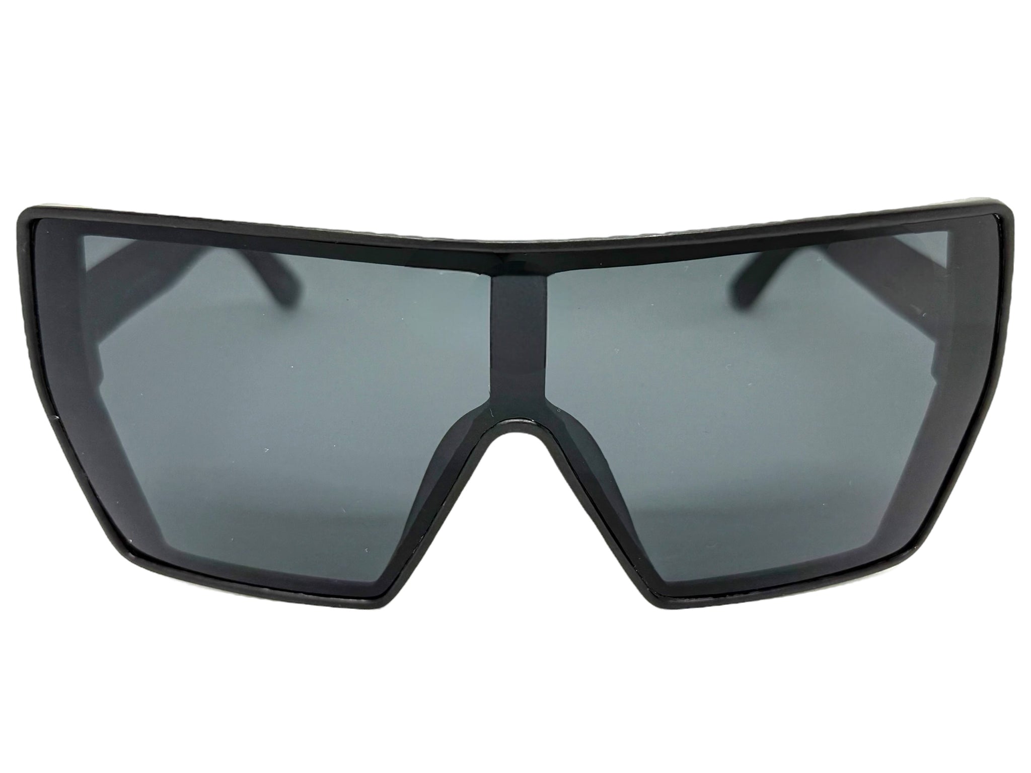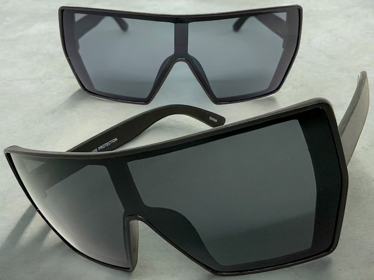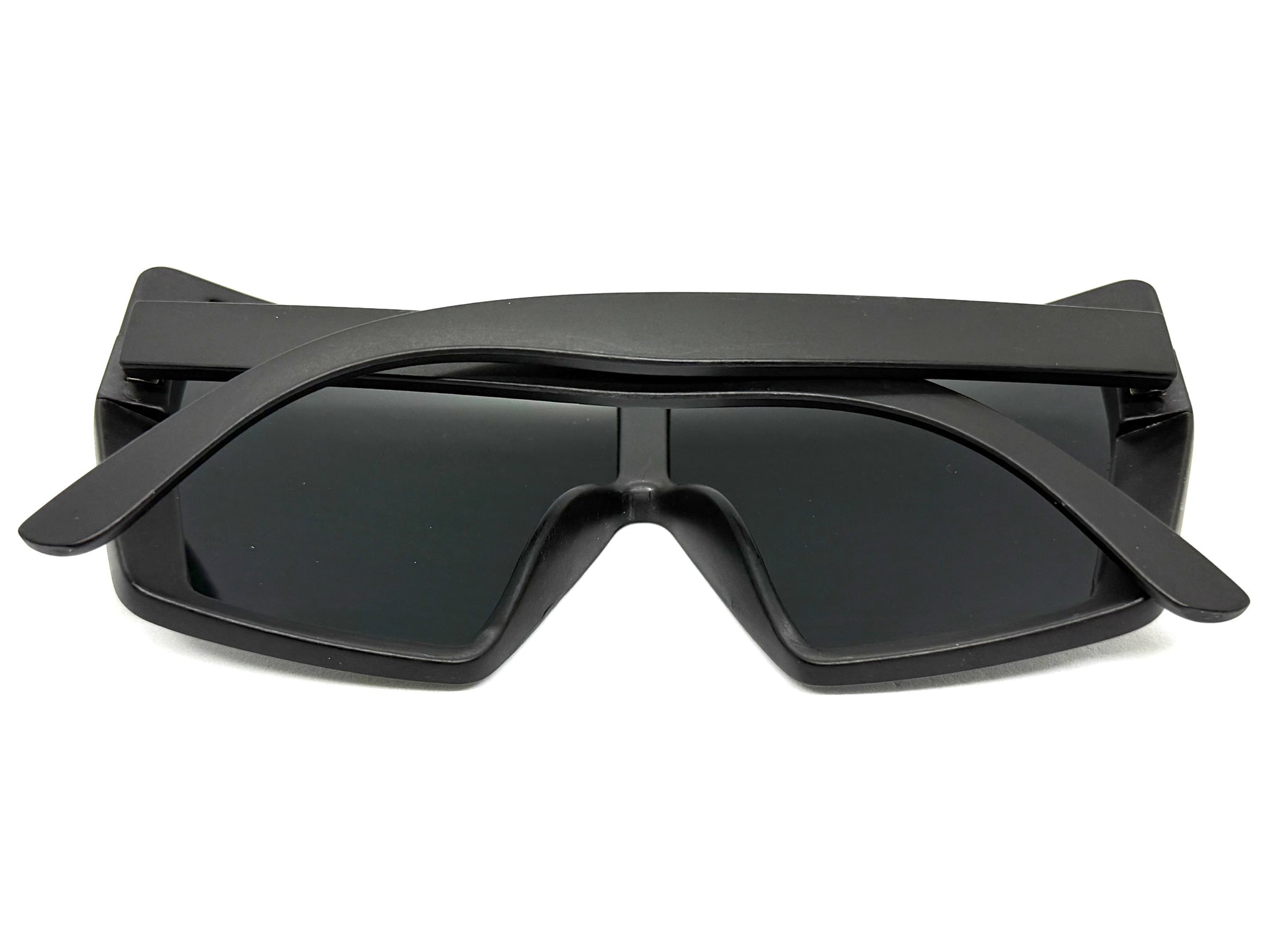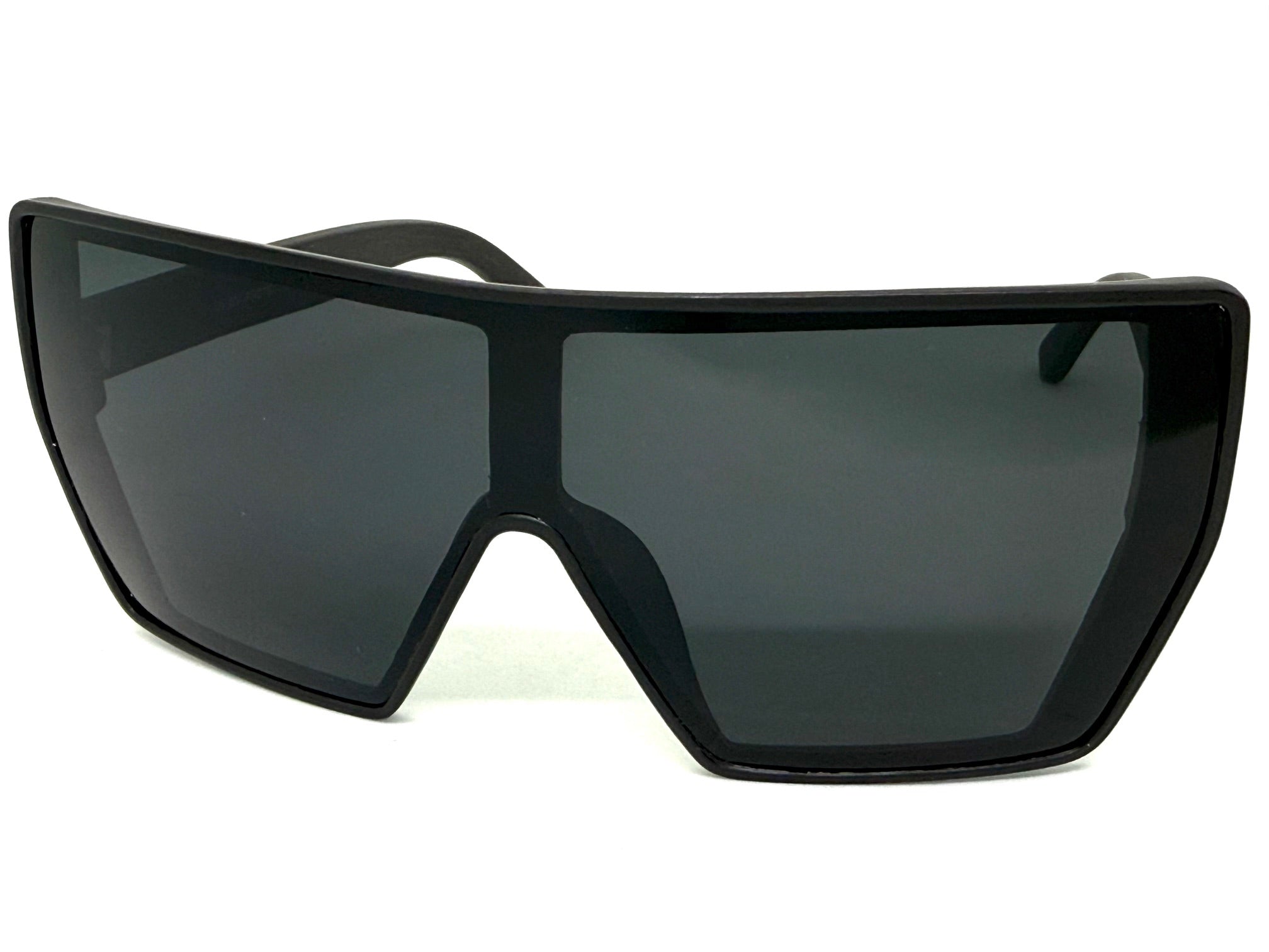 Oversized Futuristic Modern Rerto Shield Style SUNGLASSES Large Black Frame 7407