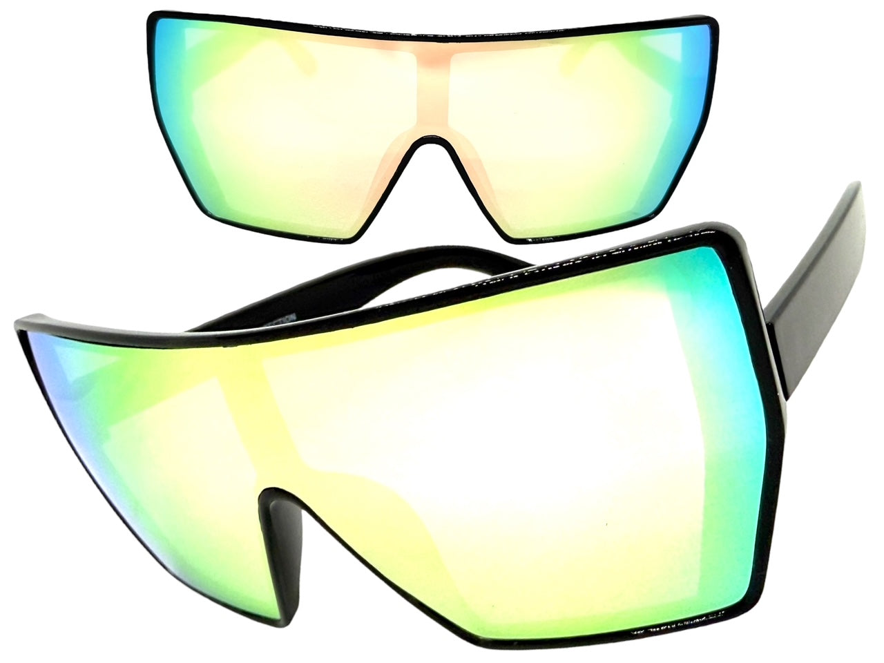 Oversized Futuristic Modern Rerto Shield Style SUNGLASSES Large Black Frame 7407