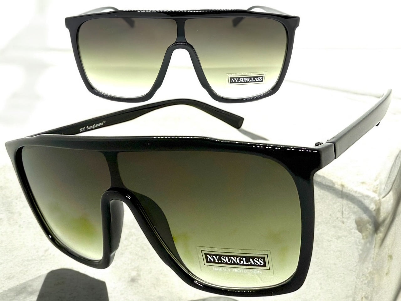 Oversized Modern Rerto Shield Style SUNGLASSES Large Black Frame 6984