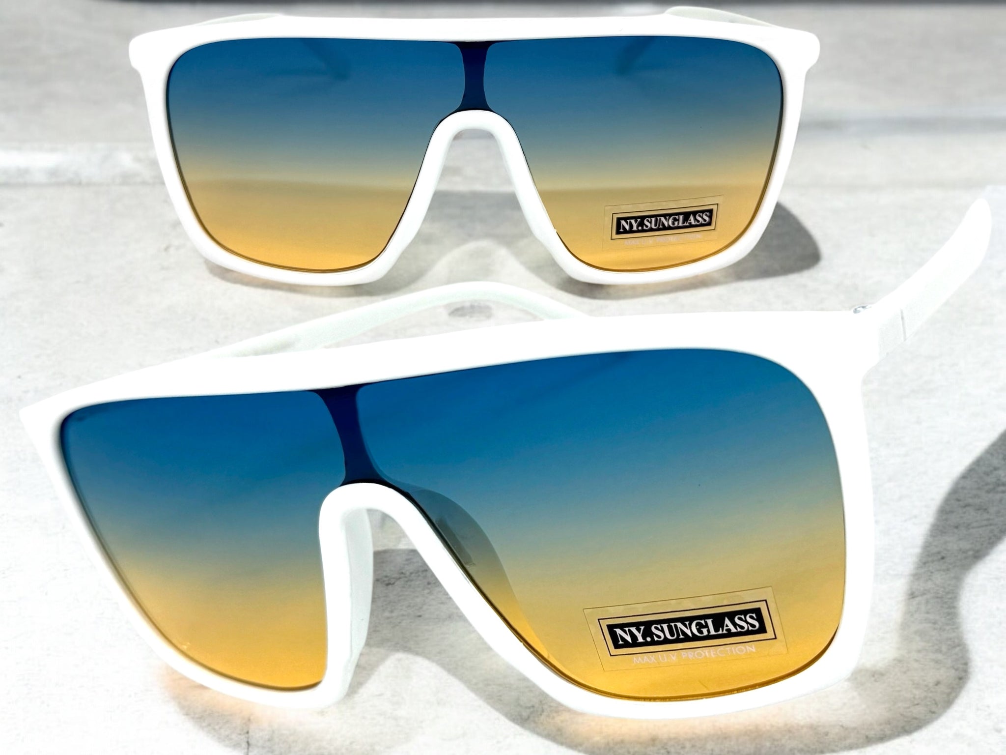 Oversized Modern Rerto Shield Style SUNGLASSES Large White Frame 6984