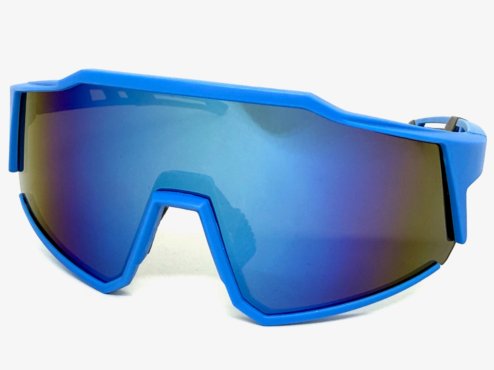 Oversized Sporty Wrap Around Shield SUNGLASSES Large Blue Frame & Lens E2095