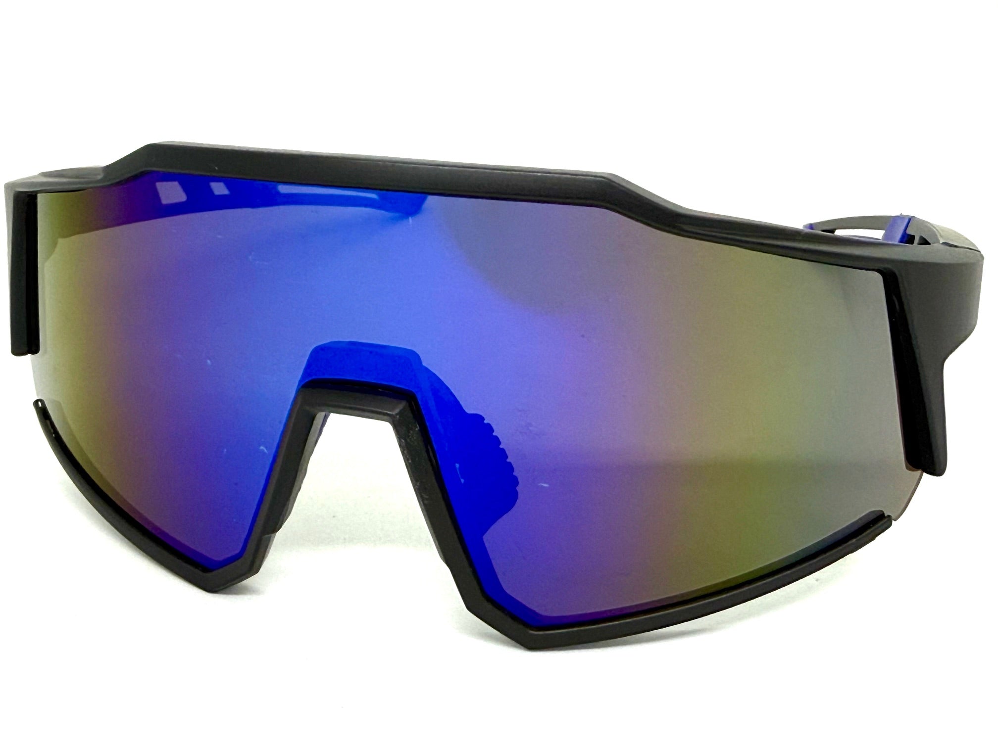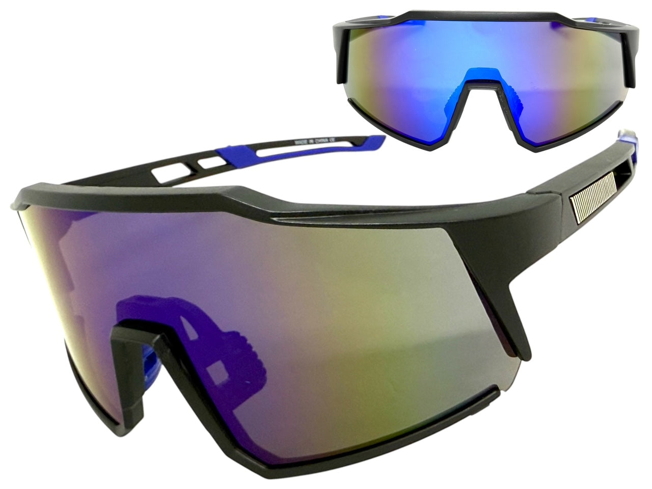 Oversized Sporty Wrap Around Shield SUNGLASSES Large Black Frame Blue Lens E2095