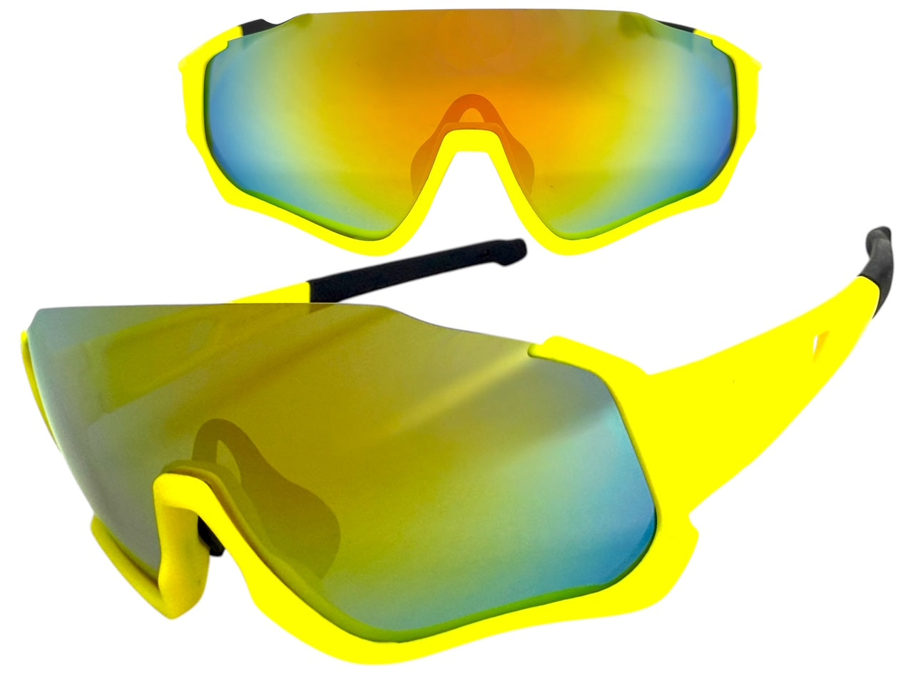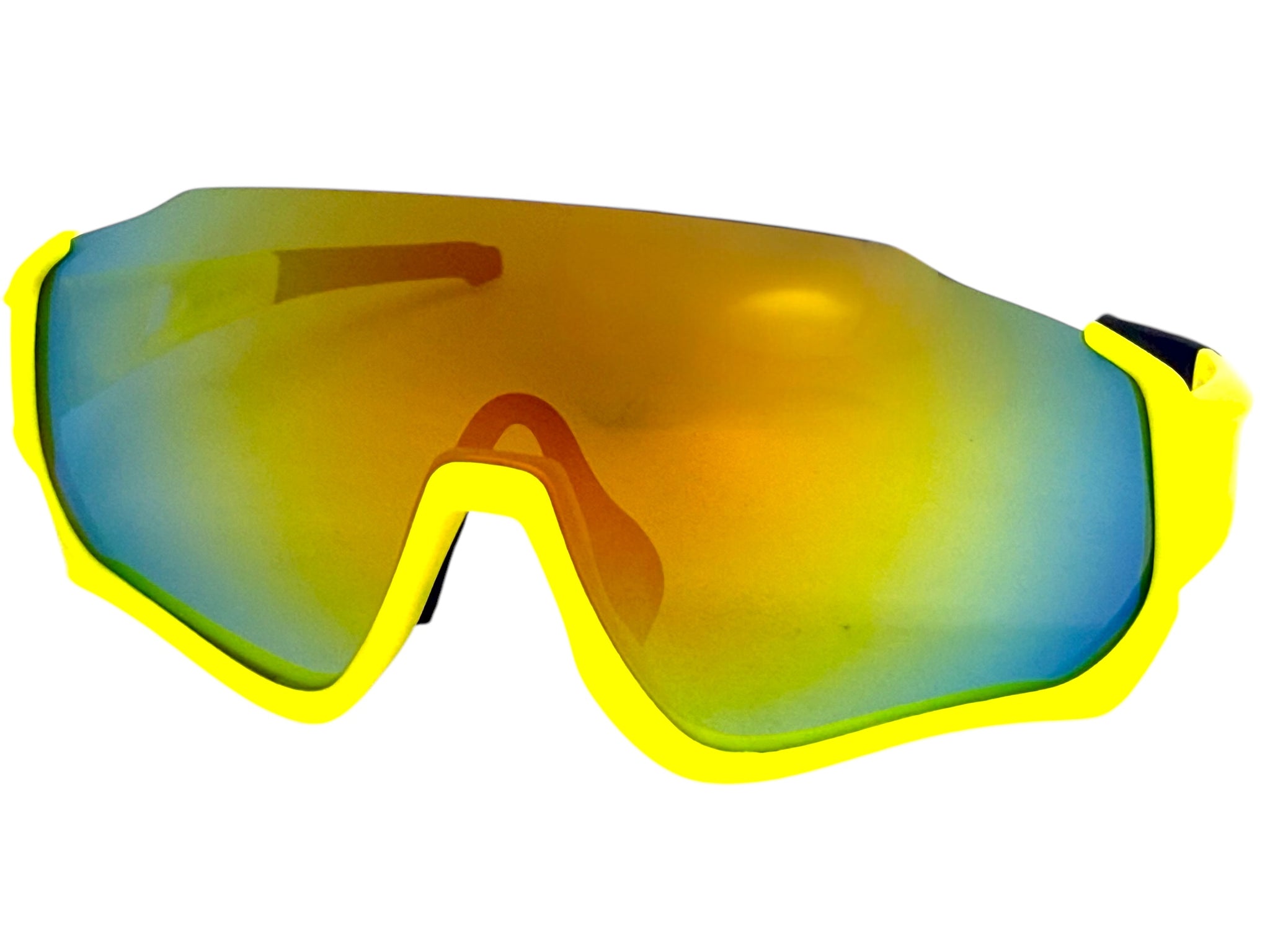 Sporty Retro Wrap Around Shield Style SUNGLASSES Neon Yellow Frame Gold Lens E2028
