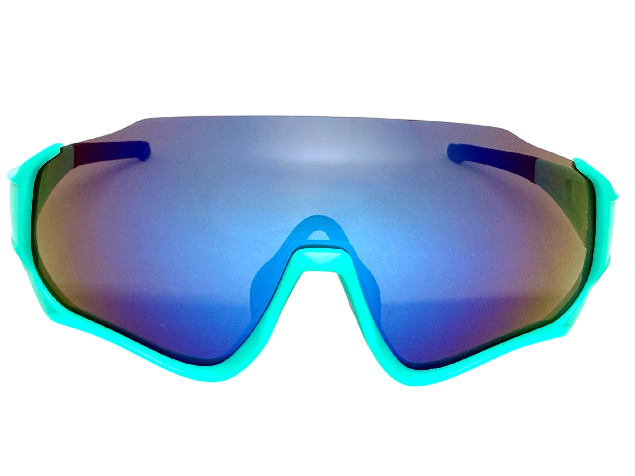 Sporty Retro Wrap Around Shield Style SUNGLASSES Turquoise Frame Blue Lens E2028