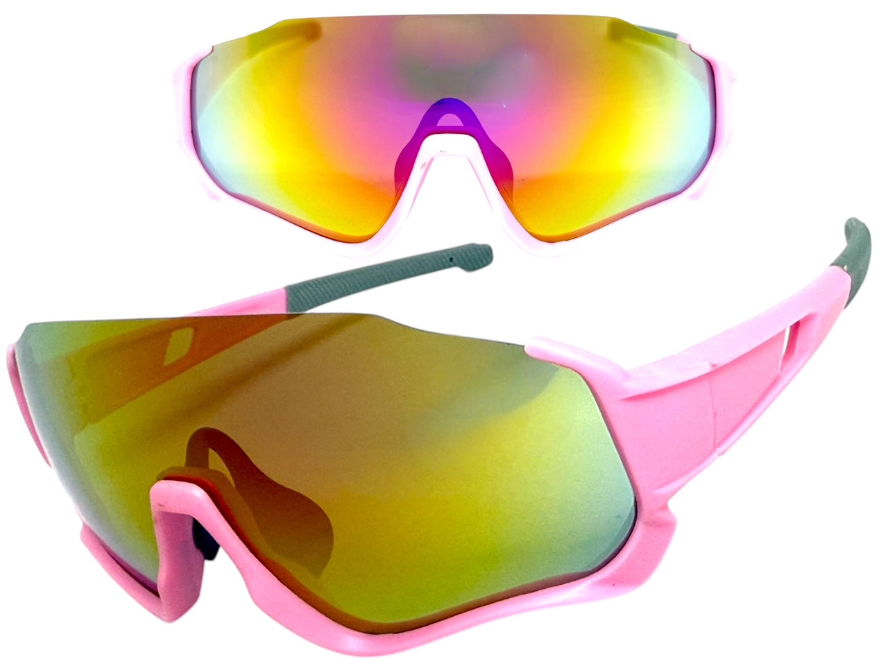 Sporty Retro Wrap Around Shield Style SUNGLASSES Pink Frame Gold Lens E2028
