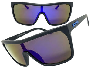 Oversized Modern Retro Shield Style KUSH SUNGLASSES Large Matte Black Frame 6211