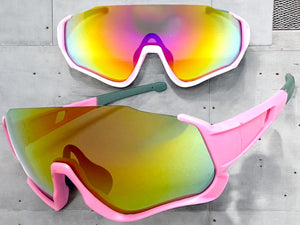Oversized Sporty Wrap Around Shield SUNGLASSES Large Hot Pink Frame Gold Lens E2095