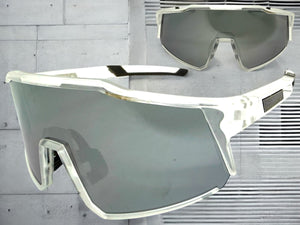 Oversized Sporty Wrap Around Shield SUNGLASSES Large Frosted Frame Chrome Lens E2095