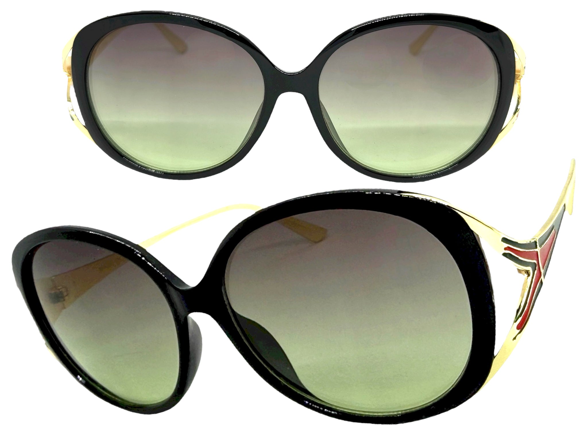 Oversized Exaggerated Vintage Retro Style SUNGLASSES Large Round Black & Gold Frame 96211